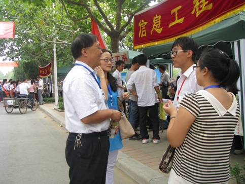 大家以优质的服务去迎接新生,耐心地与家长沟通,为家长及时安排座位休息,带领着13级新生穿梭于缴费、报名登记、领取饭卡、购买校服等新生办理手续必经的各个地点。所有人对每一个细节都精益求精,在效率和质量两不误的情况下顺利完成任务。即使一个个都大汗淋漓,也毫无抱怨 。整个迎新工作中,继续保持迎接专升本新生的务实 、高效、热情的工作作风赢得了好评,再次展现了良好的道德素质。系主任李学桥教授和总支魏民书记也在百忙之中前来指导慰问,给工作者们莫大的鼓舞,使迎新工作进行的井然有序。