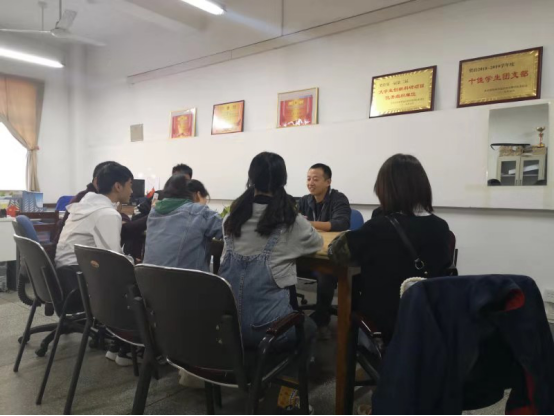 太阳成集团tyc33455ccww为了响应“不忘跟党初心、牢记青春使命”活力团支部创建活动,18级团总支内组织了“红歌大合唱”活动,团总支书记张吉祥老师利用课余时间召集18级各班团支书同学,进行活动指导、部署活动安排、动员同学们积极开展此活动。