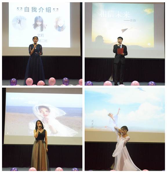 经过前期的初赛,最终有六位同学脱颖而出进入决赛。本次比赛分为模拟主持和才艺展示两轮。首先,在模拟主持环节中,同学们语言幽默稳重,内容丰富,形式多样,在短短的几分钟里充分展现他们扎实的语言功底,以及极具个人特色的主持风格。接着,在才艺表演中,每位选手都毫不保留的展示自己的才艺,其中5号选手黄诗诗带来的歌曲《all of me》,6号选手文莉的优美舞蹈,赢得了现场同学们的热烈掌声。