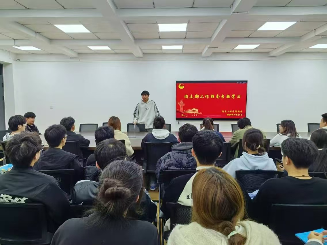 2024年11月21日晚上8:20,信工团委学生会团支部工作指南专题学习会议在商管楼218举行。此次会议由学生会主席杜浩主持,信工团委学生会全体成员参与学习,旨在提升团队对团支部工作的认知水平,增强组织凝聚力与工作规范性。