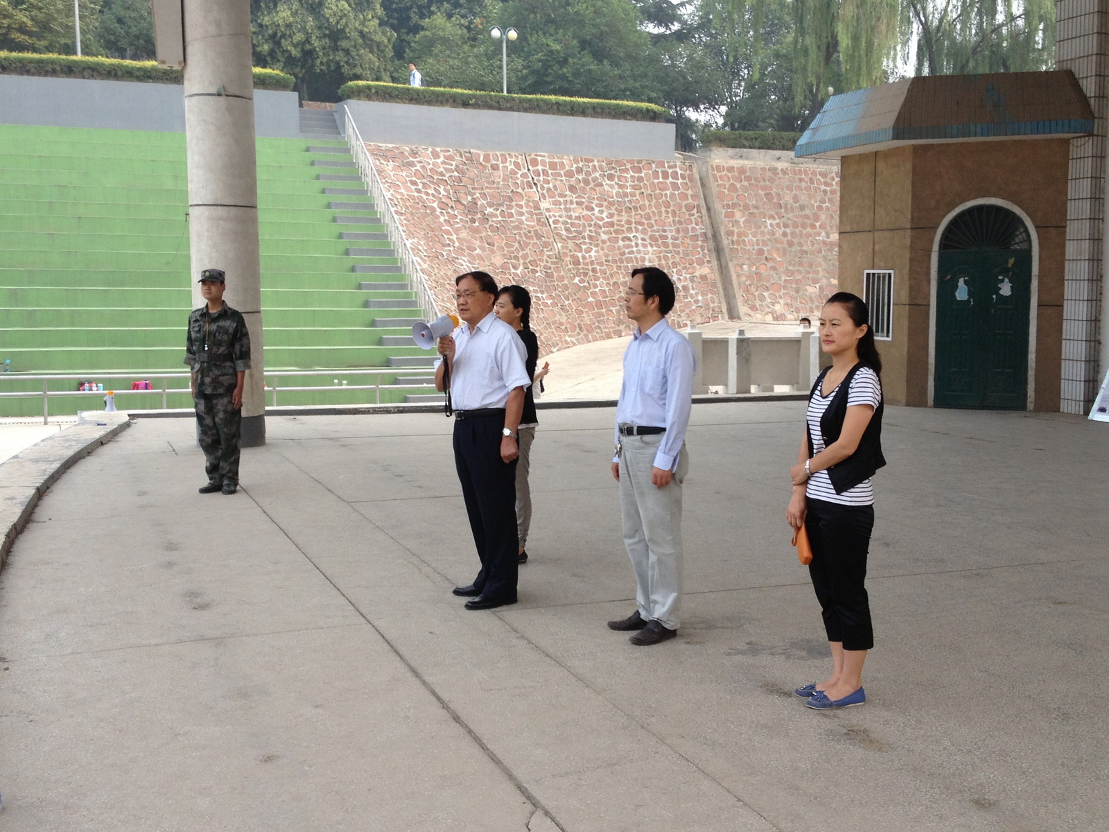 9月10日上午九点,信工系主任李学桥教授、党总支魏民书记、副书记王新平同志、行政秘书兼团委书记张娟老师和2013级新生辅导员一行来到2013级信工系新生军训现场,慰问正在军训的学生和教官。