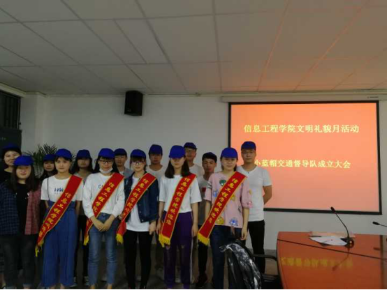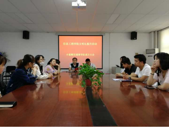 为深入贯彻十九大精神,更好的贯彻执行我校的方针政策,培养高质量人才。5月7日中午12点,我院在资讯楼104会议室召开文明礼貌月系列活动之小蓝帽交通督导队成立大会。出席本次会议的有我院团委常务副书记袁奉亚老师、15级辅导员王保进老师,学生会副主席杨文豪和青志协所有成员。