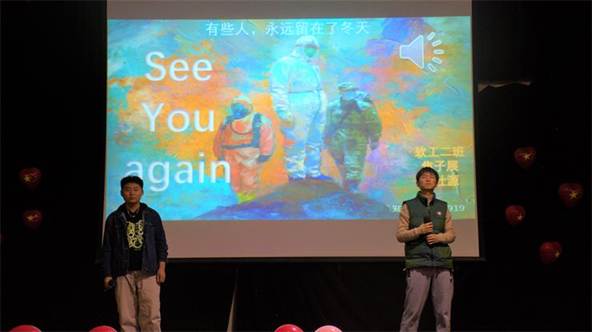 大赛随着主持人的激情陈词迎来了第一个节目,开场舞《loco》。表演者动感的舞姿,充满激情的肢体语言诠释了最富活力的青春姿态,观众们也随着舞姿活跃起来,为表演者献上热烈的掌声。随后,歌曲《孤勇者》,朗诵《我的1919》,小品《茶馆》等节目的一一呈现。歌曲《see you again》的表演歌声动人,令观众身临其境,沉迷其中不能自拔,小品《最美逆行者》的表演生动而真切,深深的表达了对抗击疫情的最美逆行者的崇高致敬,《百年赞歌》的朗诵慷慨激昂,荡气回肠,诵出中国百年的奋进与成就,诵出爱国者的真情切意。随着表演的的进行,观众们时而爆笑鼓掌,时而沉默含泪。他们从《孤勇者》中获得对抗困境的勇气,在《我的1919》中激发了保卫国家领土的豪情,在《茶馆》中体会到苦难人民的痛苦。每一个节目都精彩纷呈,高潮迭起,赢得观众们的阵阵掌声和连连喝彩。为缓解大赛的紧张氛围,中间还有两次抽奖活动,每位幸运观众都能获得大赛准备的奖品一份。