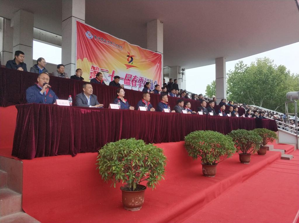 4月25日上午,我校隆重举行第二十一届田径运动会开幕仪式。信工学院300余人到场参加、观看运动会。