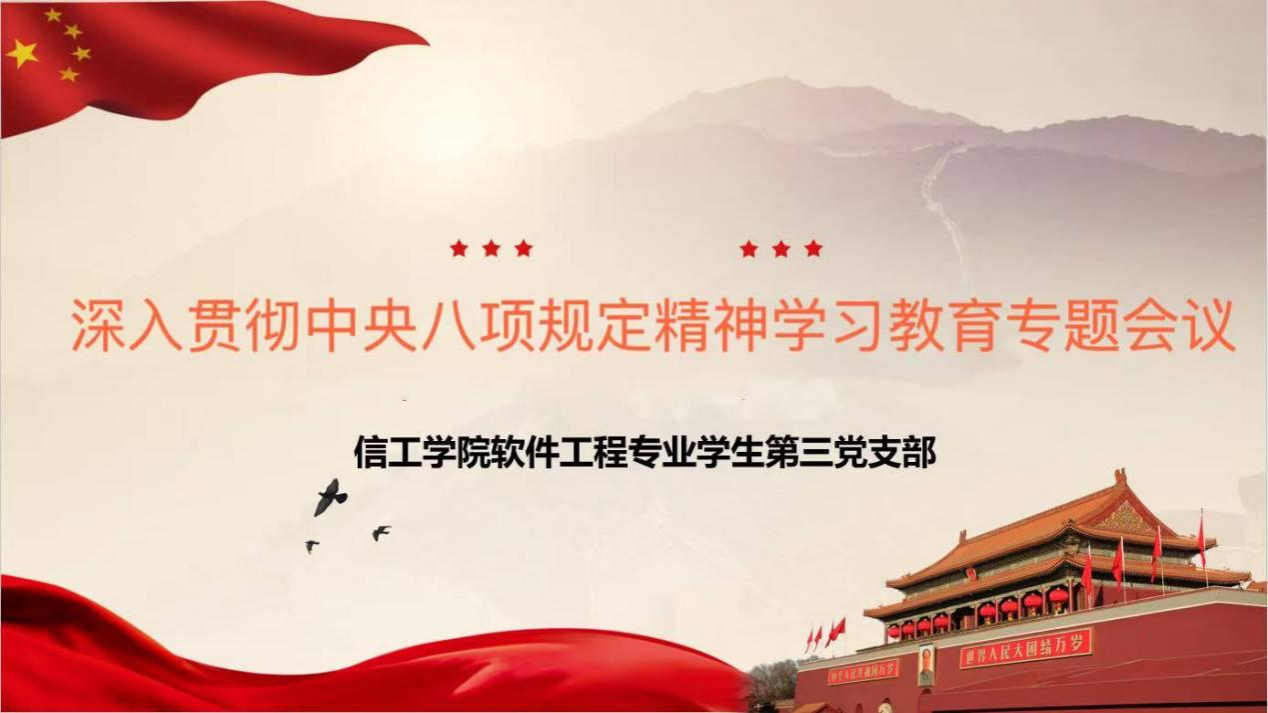 为进一步强化党员纪律意识和规矩意识,2025年4月23日,软件工程专业学生第三党支部召开深入贯彻中央八项规定精神学习教育专题学习会。本次会议由党支部书记冯煜婷主持,党支部全体党员参与学习。
