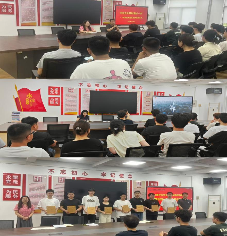 最后,学院为各班毕业生联络员发放反邪教纪念品,鼓励他们发挥桥梁纽带作用,持续传播反邪理念。此次活动为毕业生筑牢反邪防线,助力他们在未来人生道路上远离邪教,平安前行。