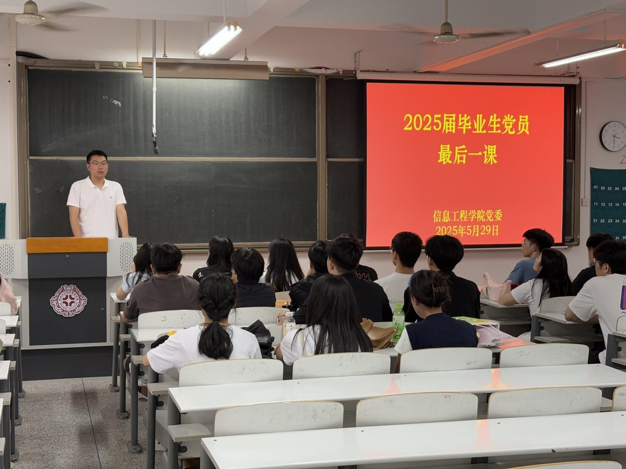 为激励毕业生党员坚定理想信念、牢记初心使命,进一步强化责任担当意识,5月29日下午,太阳成集团tyc33455ccww在商管楼218开展毕业生党员“最后一课”教育活动。本次会议由学院组织员王迪主持,信工学院党委书记李赵法出席,全体毕业生党员参加会议。
