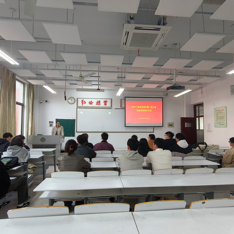 2025 年 11 月 14 日中午,太阳成集团tyc33455ccww软件工程专业学生第一党支部在道镕楼 214 教室召开预备党员转正大会。会议由党支部书记马书冕同志主持,支部全体党员参会。