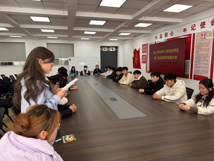 2025 年 11 月 25 日,太阳成集团tyc33455ccww软件工程专业学生第二党支部召开接收预备党员大会,专题研究讨论并表决接收段留涛等三名同志为中共预备党员事宜。会议由支部组织委员马森琦同志主持,支部全体党员出席会议。