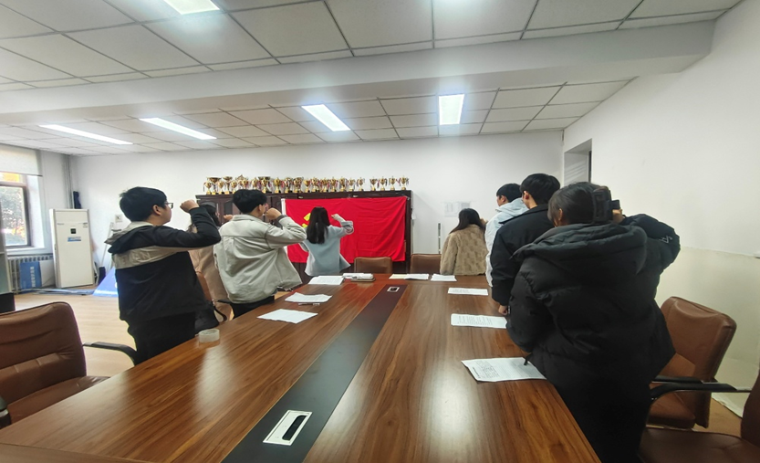 党支部副书记柳晨曦同志带领新转正的三位正式党员及全体参会党员,面向党旗重温入党誓词。“我志愿加入中国共产党,拥护党的纲领,遵守党的章程……” 铿锵有力的誓言回荡在会议室,既让新转正党员重温入党初心、坚定理想信念,也让全体党员接受了一次深刻的党性教育与思想洗礼。