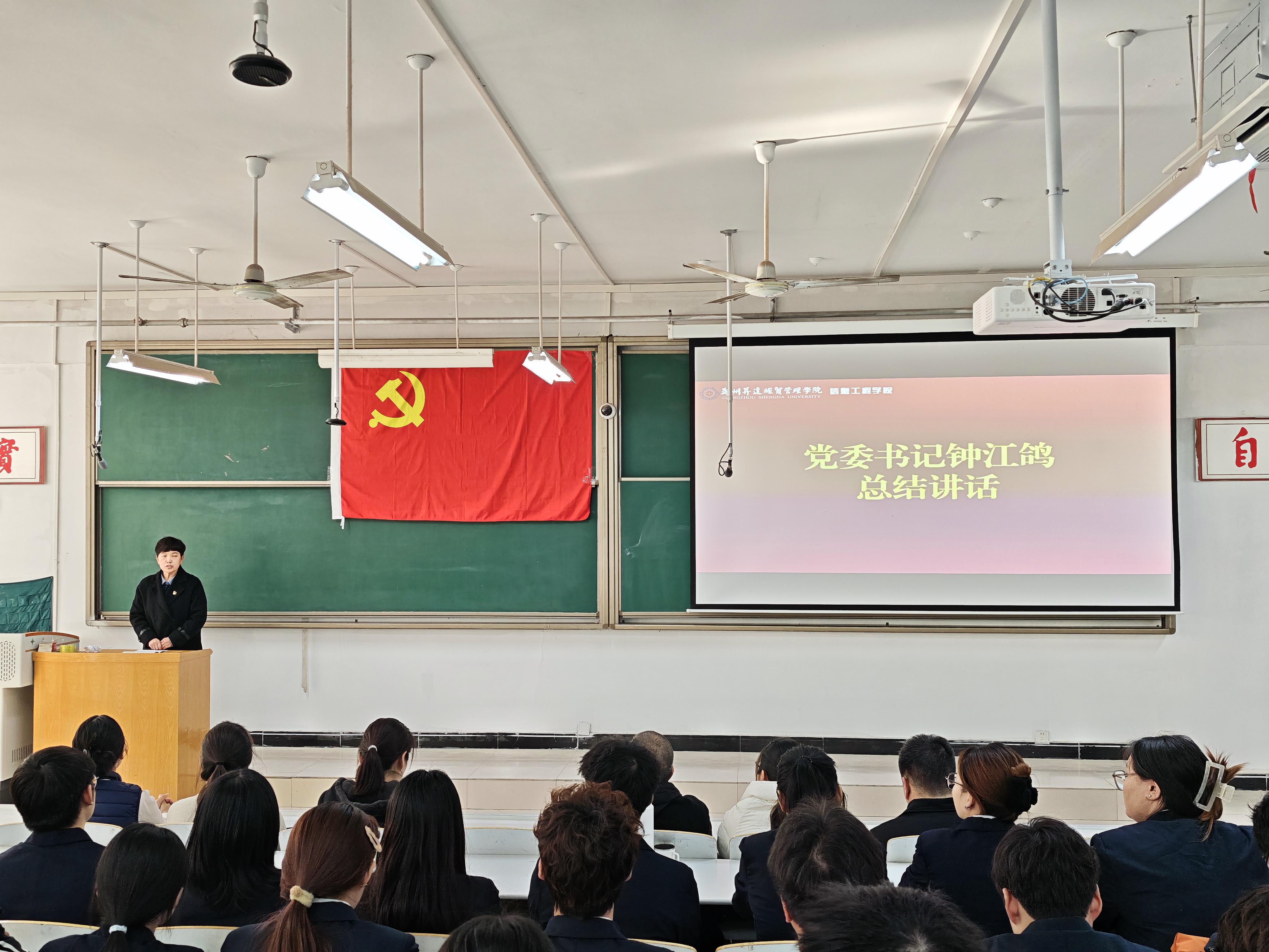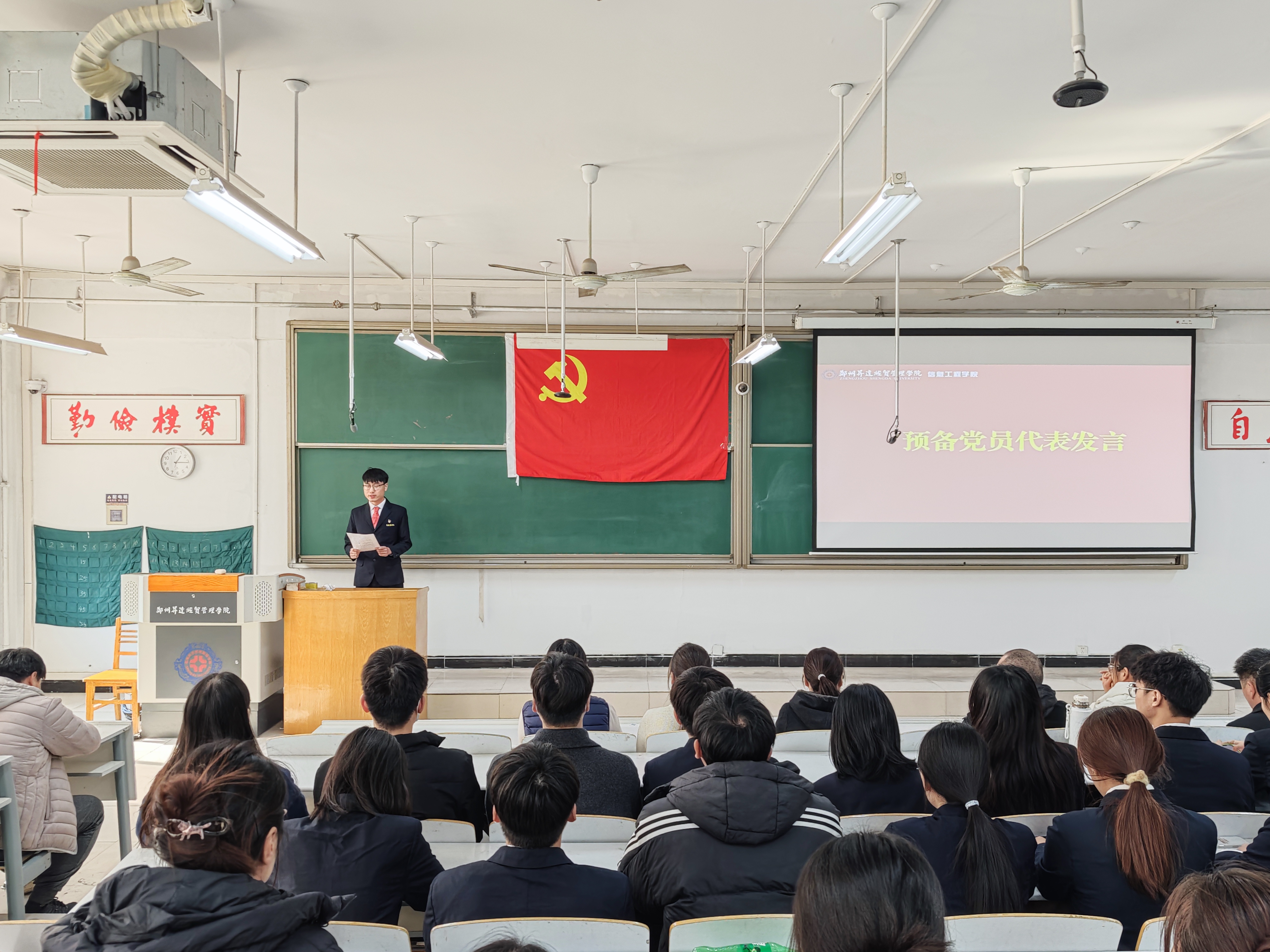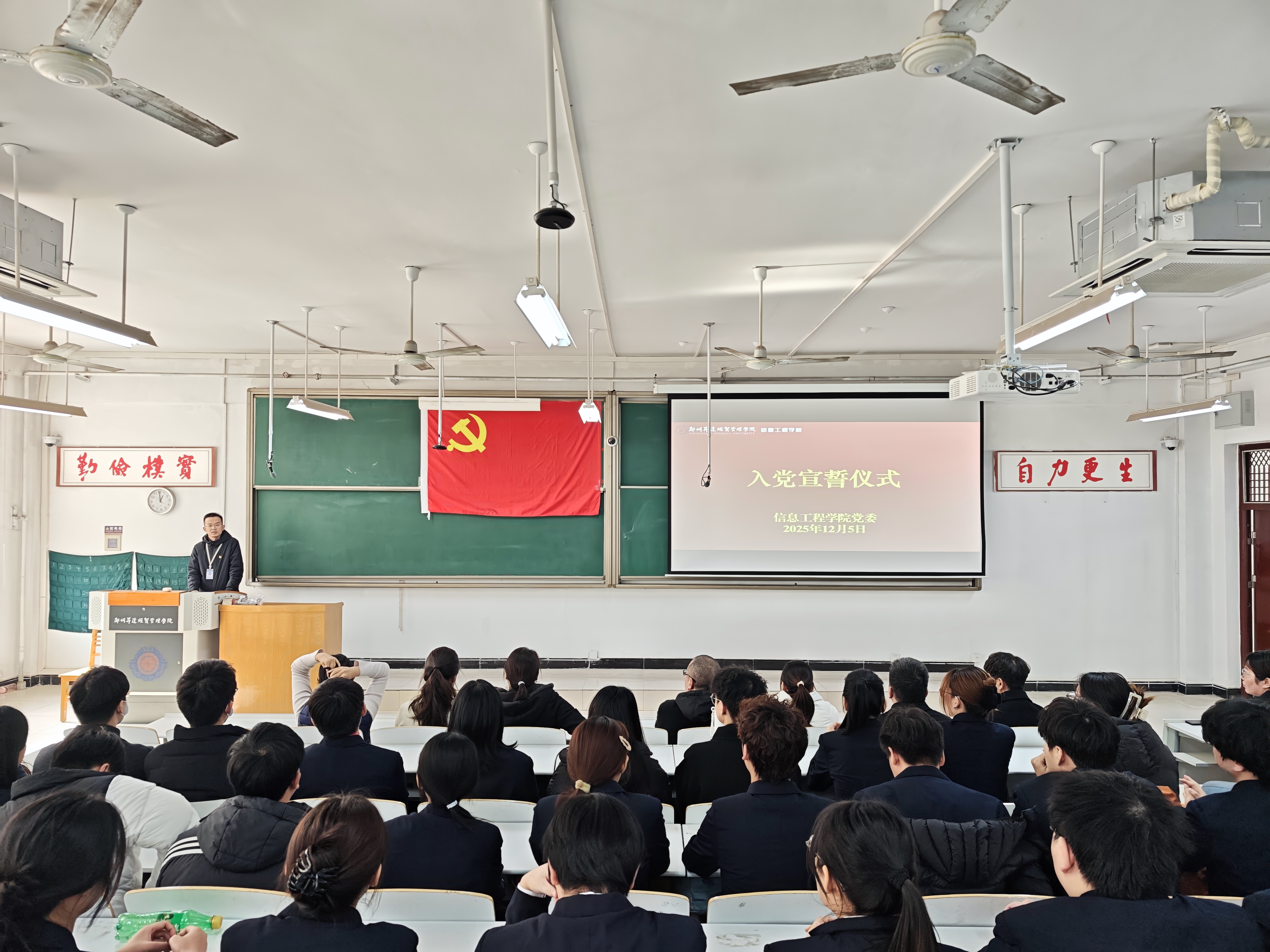 党委书记钟江鸽同志代表学院党委向新发展的预备党员表示热烈祝贺。她表示,入党宣誓是党员政治生命中具有特殊意义的重要时刻,全体新党员要以此次宣誓为新起点,在学院党建品牌“领航工程”中找准定位、践行使命:一是以“政治领航”强信念,深入学习习近平新时代中国特色社会主义思想,筑牢信仰之基;二是以“专业领航”显担当,立足学院学科特色,让专业能力在教学科研、产教融合、学科竞赛、朋辈引领中落地见效;三是以“实践领航”践初心,主动参与志愿服务活动,在社会实践中锤炼作风,让党徽在实践一线闪光。她强调,学院党委将以党建品牌“领航工程”为抓手,通过“政治领航强化队伍建设、支部领航强化育人实效”的双路径,为新党员成长搭建平台,助力大家成长为让党放心、让人民满意的优秀共产党员。