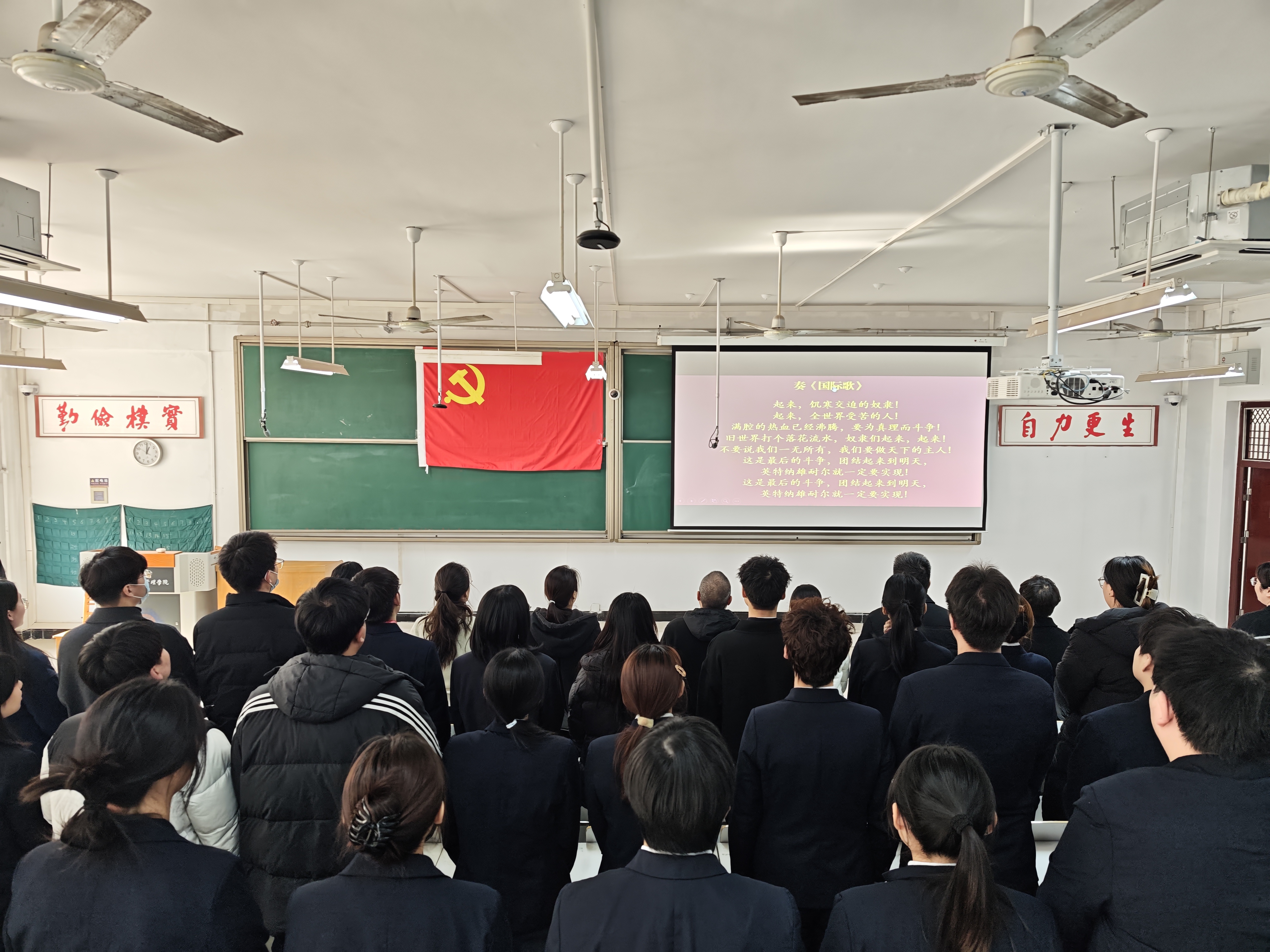 仪式在庄严的《国际歌》中拉开帷幕,全体人员起立肃立,现场氛围庄重肃穆。党委组织委员厉祎同志代表学院党委宣读参加入党宣誓仪式的新党员名单。