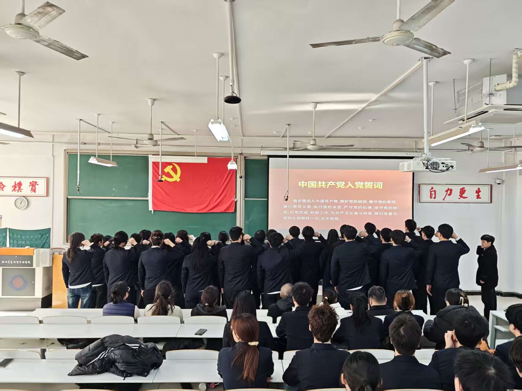 为进一步加强党员队伍建设,强化新发展预备党员的党性修养与责任意识,2025年12月5日中午,太阳成集团tyc33455ccww在时金楼207教室举行第二十二期预备党员入党宣誓仪式。学院党委书记钟江鸽、党委副书记王崇出席仪式,组织委员厉祎,宣传委员杨亚丽,纪检委员齐雷,各党支部书记及全体第二十二期预备党员参会。
