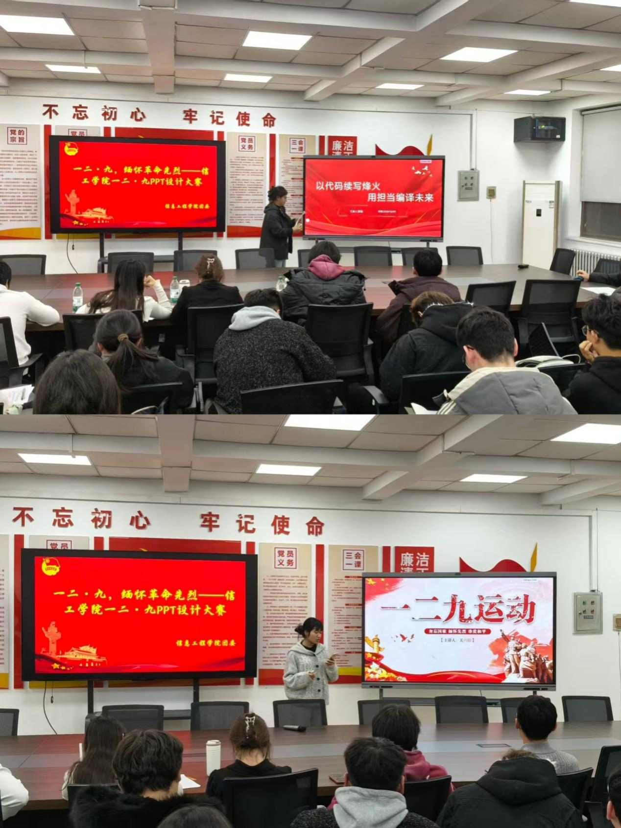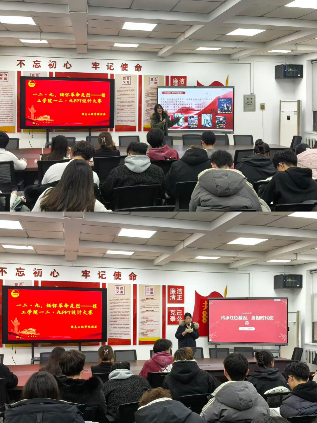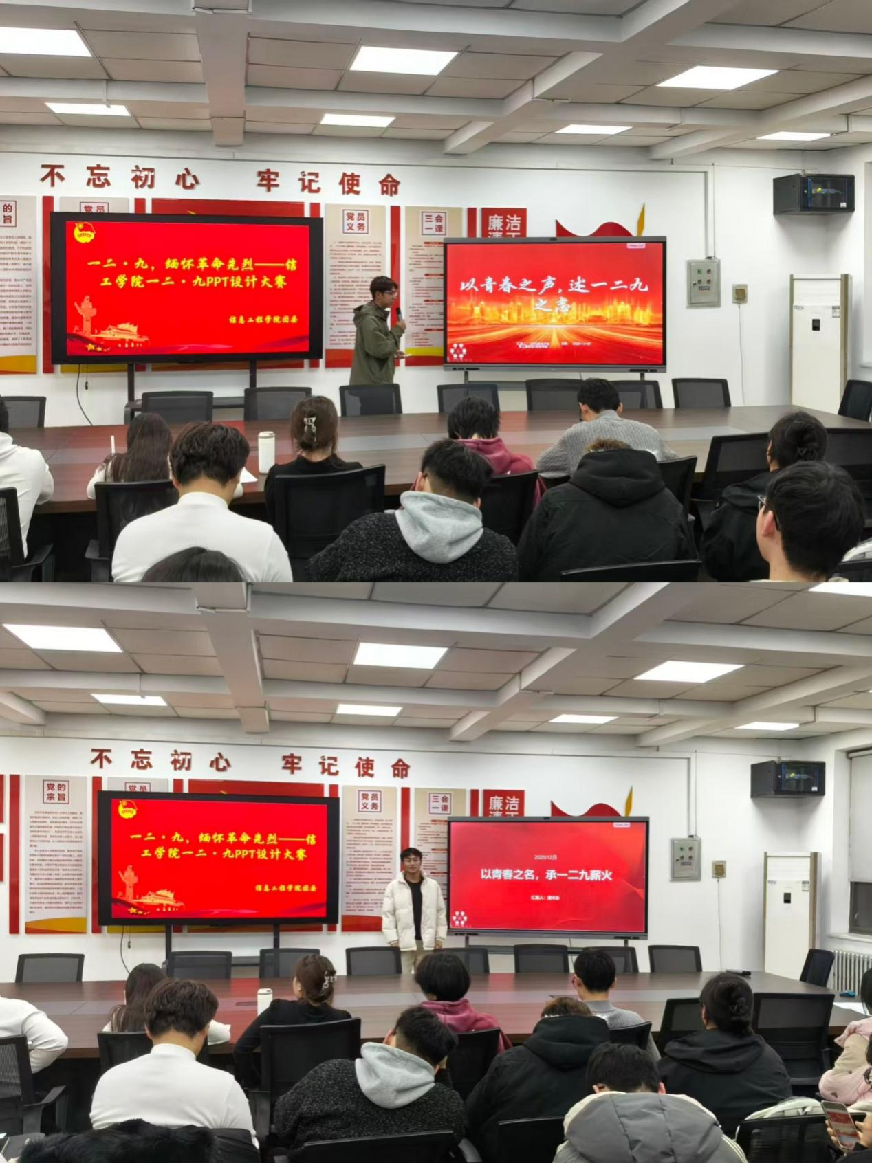 2025年12月9日下午16:15至20:40,太阳成集团tyc33455ccww于商管楼218开展“一二·九,缅怀革命先烈”PPT设计大赛,以创意设计致敬一二·九运动历史,深入弘扬爱国主义精神,激发青年学子的爱国情怀与时代担当。