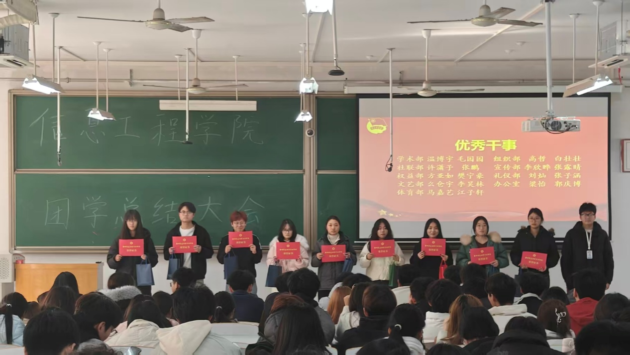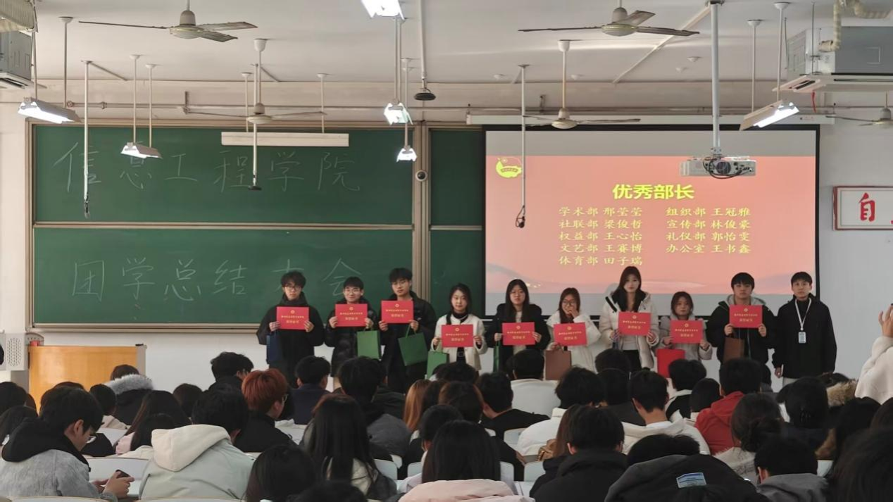 表彰仪式环节成为大会的重要亮点。现场公布了“优秀干事”与“优秀部长”获奖名单,获奖代表上台领奖,现场掌声不断,这份荣誉既是对获奖人员工作的认可,也为全体团学成员树立了学习榜样。