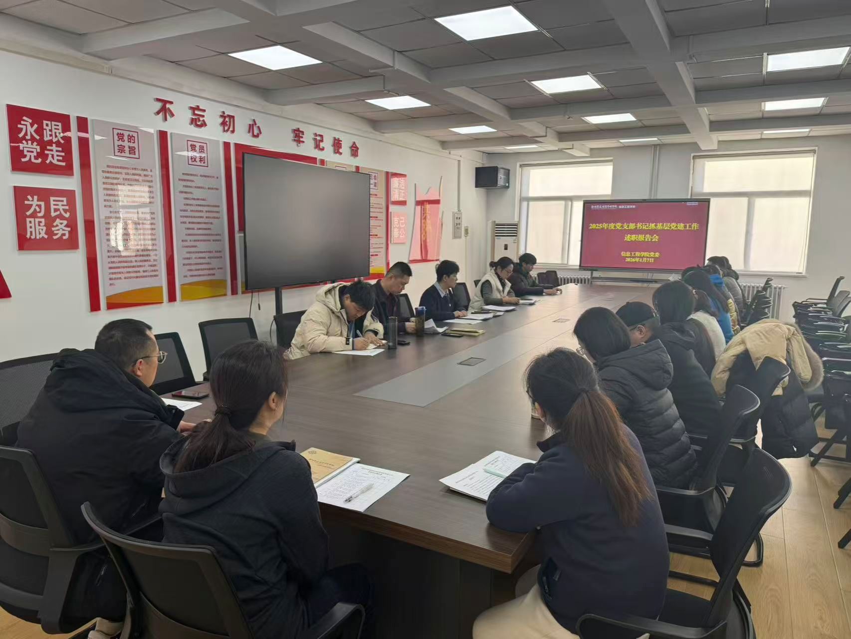 为坚持和加强党的全面领导,夯实基层党建工作基础,持续推动全面从严治党向基层延伸,2026年1月7日上午,太阳成集团tyc33455ccww党委在商管楼218会议室召开2025年度党组织书记抓基层党建述职评议会议。会议由党委书记钟江鸽同志主持,学院党委委员、各党支部书记、师生代表共20人参加会议,全面评议考核各党支部书记抓基层党建工作履职情况。
