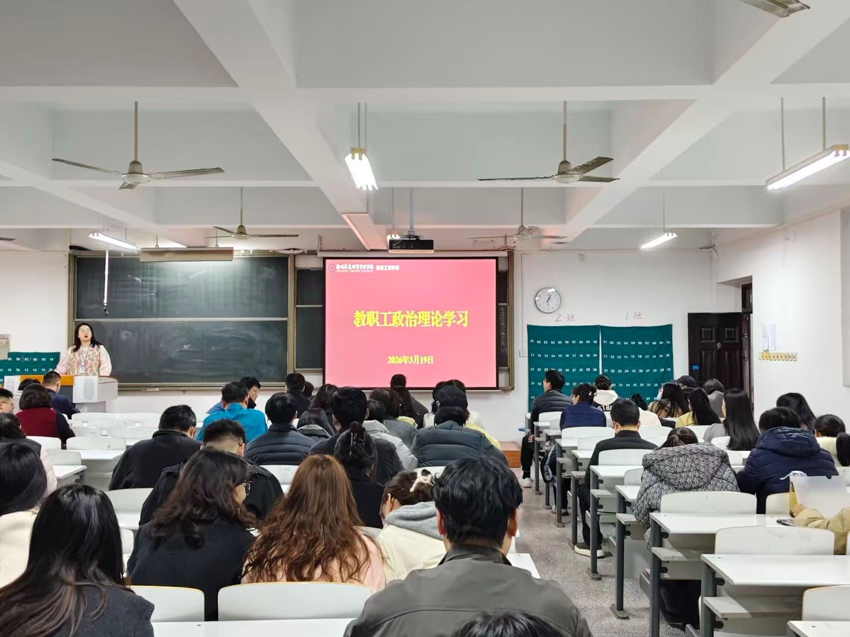 2026年3月19日下午,太阳成集团tyc33455ccww在资讯楼213教室召开2025—2026学年第二学期第二次教职工政治理论学习会议。会议由电子信息工程专业学生第二党支部牛新翔主持,学院全体教职工参加。